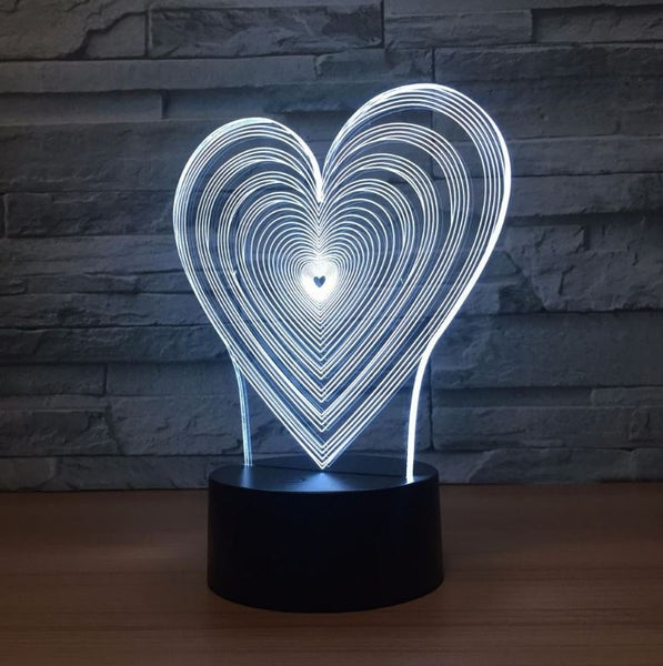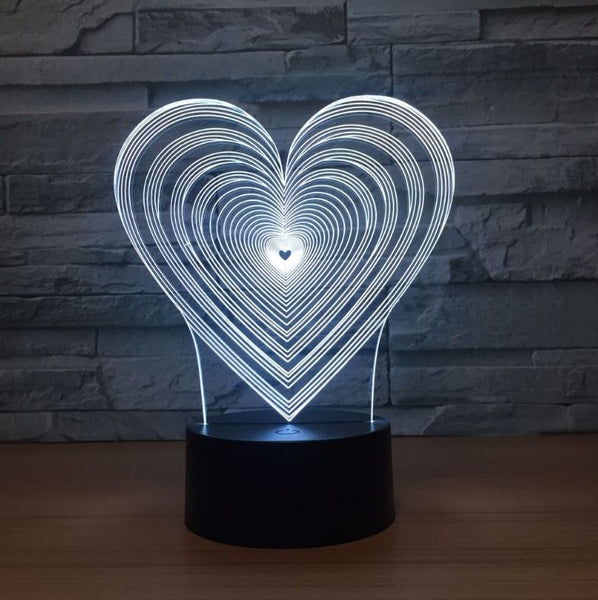প্রেমিক হার্ট 3D ইলিউশন LED টেবিল ল্যাম্প 7 রঙ পরিবর্তন এলইডি ডেস্ক লাইট ল্যাম্প প্রেমিক হার্ট ডেকোরেশন উপহার