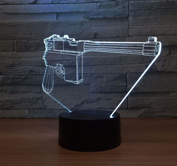 পিস্তল 3D ইলিউশন LED টেবিল ল্যাম্প 7 রঙ পরিবর্তন এলইডি ডেস্ক লাইট ল্যাম্প পিস্তল সজ্জা