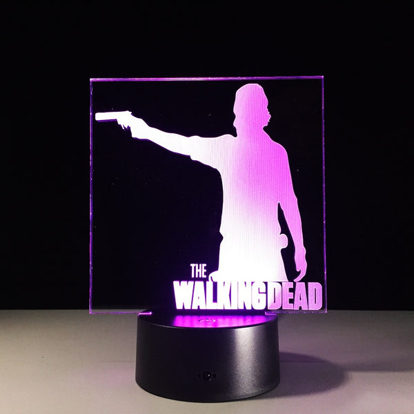 দ্য ওয়াকিং ডেড রিক গ্রিমস 3ডি ইলিউশন লেড টেবিল ল্যাম্প 7 রঙ পরিবর্তন এলইডি ডেস্ক লাইট ল্যাম্প ওয়াকিং ডেড ফিগার জন্মদিনের উপহার ক্রিসমাস উপহার