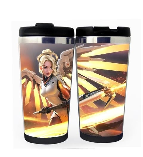 ওভারওয়াচ মার্সি কাপ স্টেইনলেস স্টিল 400ml কফি চা কাপ বিয়ার স্টেইন ওভারওয়াচ জন্মদিনের উপহার ক্রিসমাস উপহার