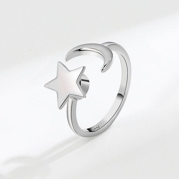 Star and Moon Fidget Ring Women Adjustable Toi et Moi Ring