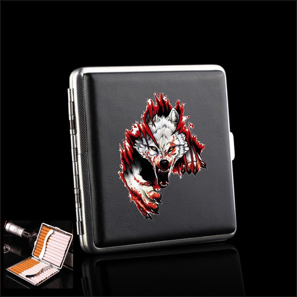 Wolf Funny PU kožené kapesní pouzdro na cigarety Kovové pouzdro na tabák Držák krabičky pro kuřáky Uskladňovací dárky