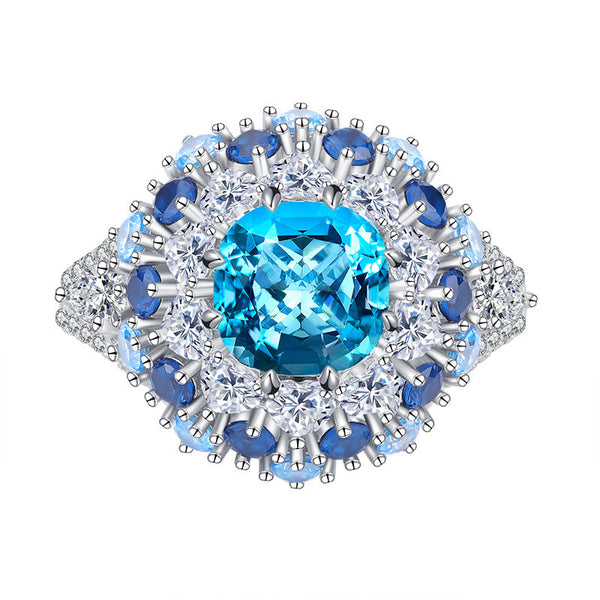 Sterling Silver Aquamarine Zásnubní prsten Luxusní snubní prsteny