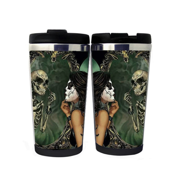Elegantní dáma s odrazem lebky v zrcadle Legrační hrnek Hrnek na kávu Nerezová izolovaná sklenice na kávu Čaj Šálek na vodu
