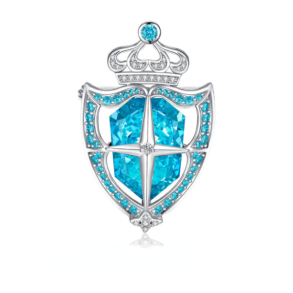 Brož s korunou ze sterlingového stříbra s modrou drahokamu