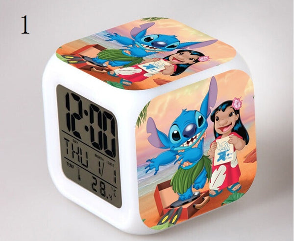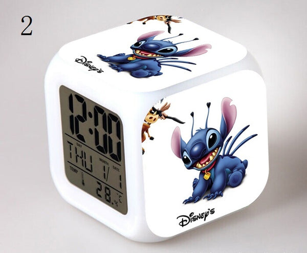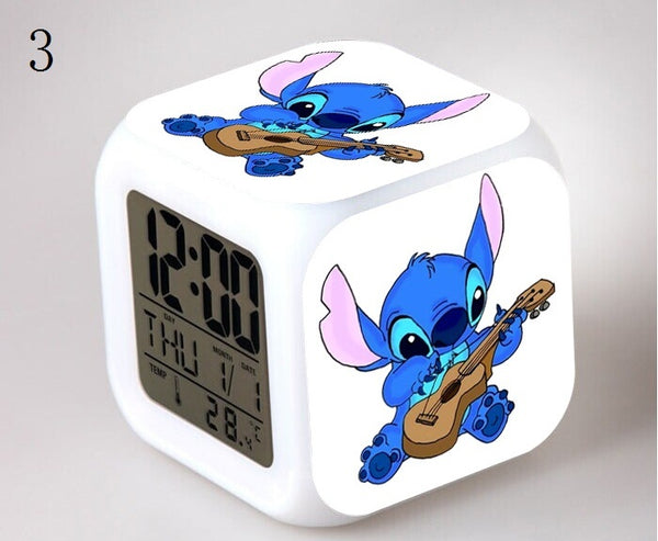 Stitch LED Colorful Lights Alarm Clock Bedroom Student Clock