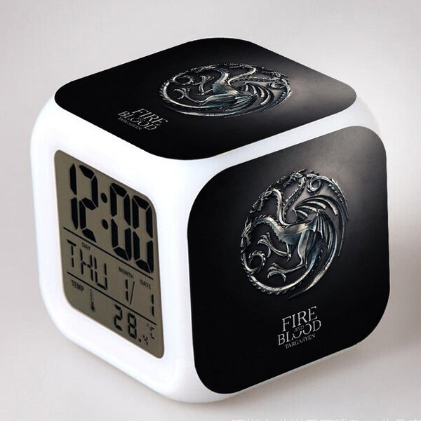 Game of Thrones LED Colorful Lights Creative Small Alarm Clock Room Bedroom Game of Thrones Clock Birthday Gifts Christmas Gifts
