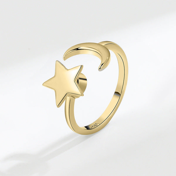 Star Rotating Ring Women Star and Moon Index Finger Open Ring. Star and Moon ring has an adjustable opening design, The ring fits everyone true to size and looks really cute either alone or paired with other rings. These minimalist thumb stackable rings look shiny and beautiful on your fingers. Gold rings for women are suitable for all occasions with all kinds of outfits. A stress-relieving anxiety ring is a perfect gift for anxious friends around you to help them release their stress.