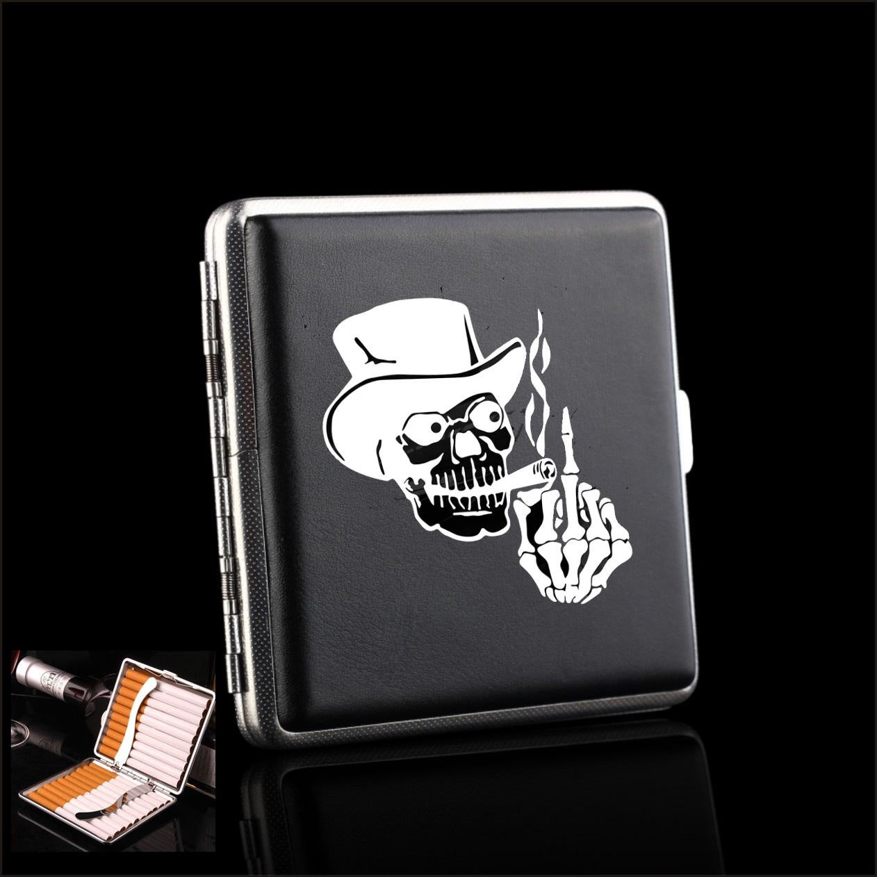 Skull PU Leather Cigarette Case Metal Tobacco Box Business Cards Holder For Smoking Gifts