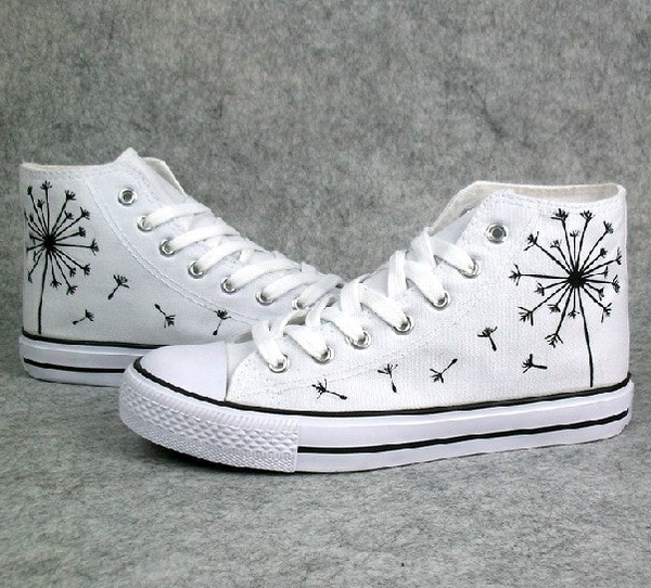 Dandelion Hand Painted Shoes Canvas Shoes Converse Sneakers High Top Floral Shoes