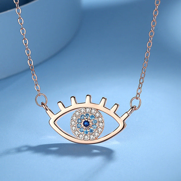 Sterling Silver Blue Sparkling CZ Evil Eye Pendant Necklace Eye Chain