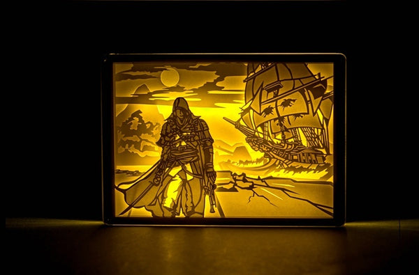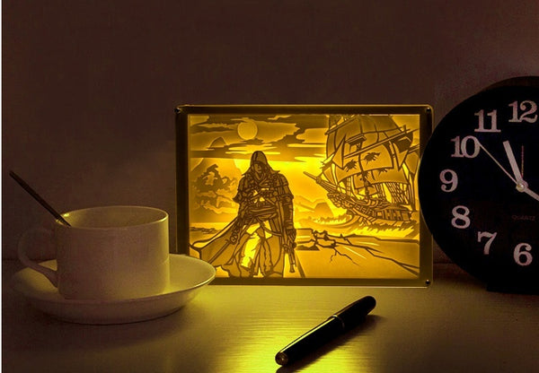 Assassin's Creed 3D Paper Carving Light Warm Night LED Light Lamp LED Desk Light Lamp Decoration Assassin's Creed Gifts Children Gift Birthday Gifts Christmas Gifts