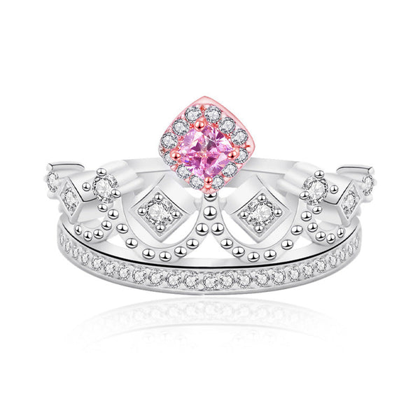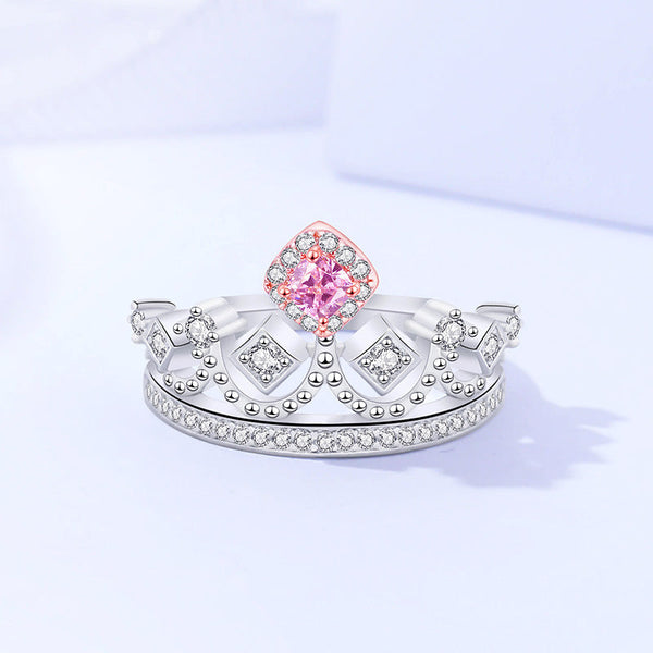 Pink Sapphire CZ Crown Ring Princess Tiara Ring Engagement Ring