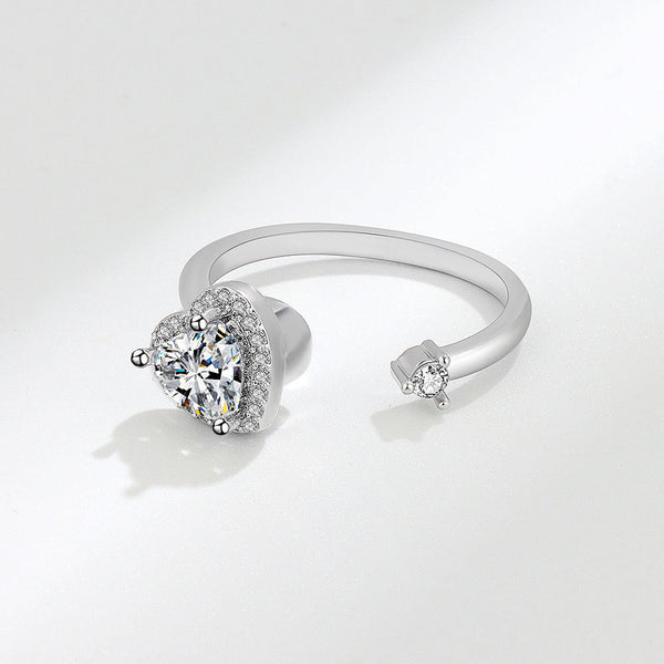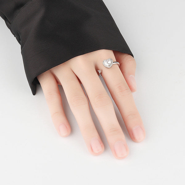 925 Sterling Silver Cubic Zirconia Heart Open Adjustable Toi et Moi RingThis sterling silver ring has a spinning heart made of Cubic Zirconia that rotates. Great for stressful moments or anxiety. Just give a little spin of the heart and like a stress relief ball, it will help you to stay calm and focused." Toi et Moi" in french means "you & me" and refers to a ring with two gems that sit side by side symbolizing two souls becoming one- the most romantic ring style in history.