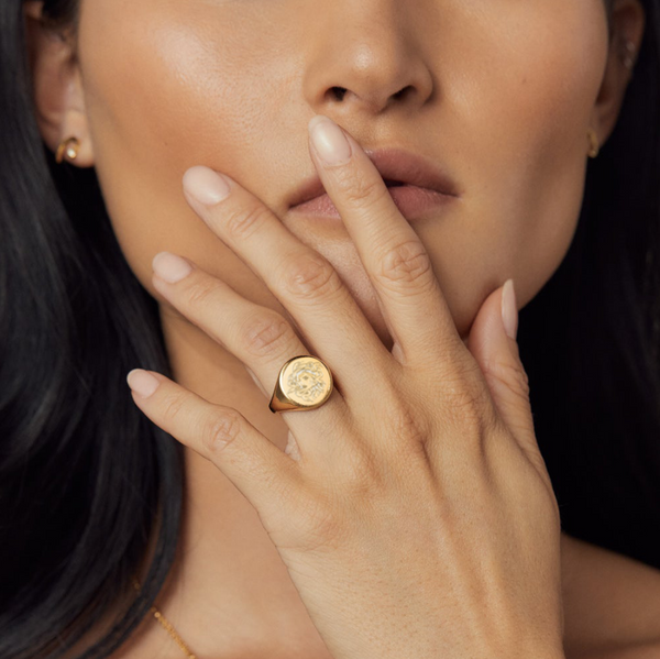 Gold Plated Sterling Silver Medusa Signet Ring
