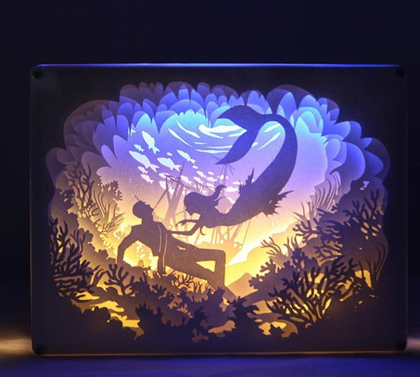 The little Mermaid 3D Paper Carving Light Warm Night LED Light Lamp LED Desk Light Lamp Mermaid Decoration Gifts Children Gift Birthday Gifts Christmas Gifts