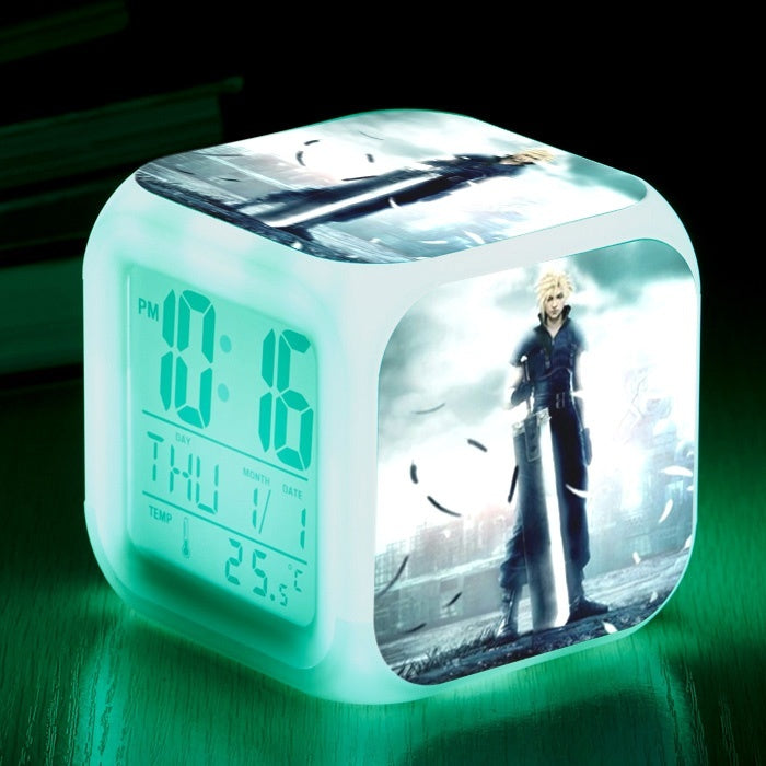 Final Fantasy Cloud Strife LED Colorful Lights Creative Small Alarm Clock Room Bedroom Final Fantasy Clock Birthday Gifts Christmas Gifts