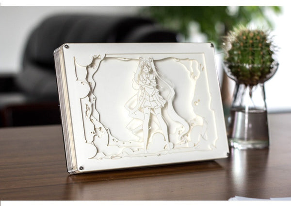 Sailor moon 3D Paper Carving Light Warm Night LED Light Lamp LED Desk Light Lamp Decoration Sailor moon Gifts Children Gift Birthday Gifts Christmas Gifts
