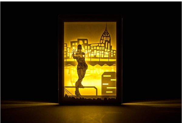 Iron man 3D Paper Carving Light Warm Night LED Light Lamp LED Desk Light Lamp Decoration Iron man Gifts Children Gift Birthday Gifts Christmas Gifts