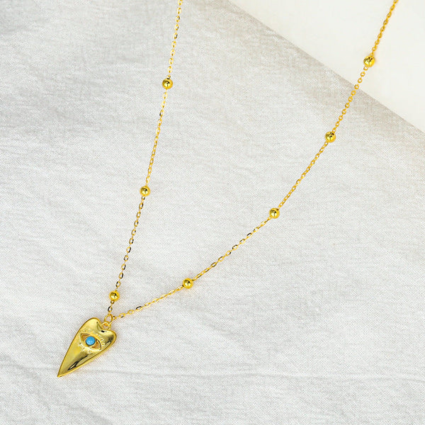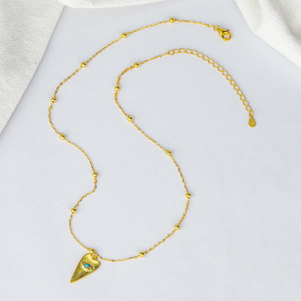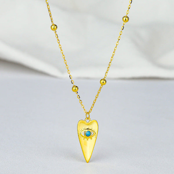 Sterling Silver Gold Beads Chain Geometric Triangle Pendant Evil Eye Necklace